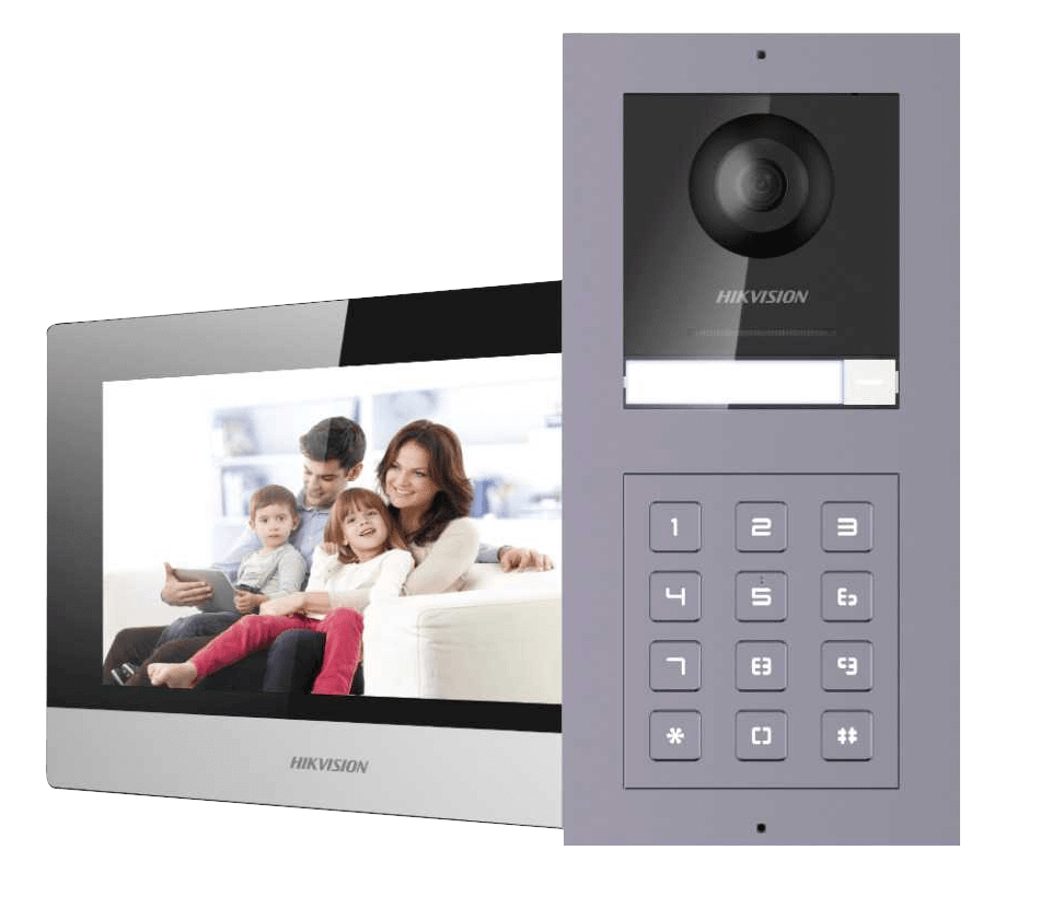 מצלמה 2MP מיקרופון ורמקול מובנים כולל IR, לחצן Physical Button ניתן לשייך ל-6 תחנות פנימיות בעזרת DS-KAD706-P